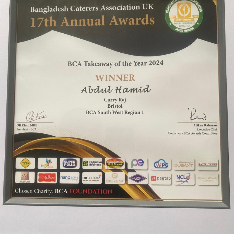 We are thrilled and deeply grateful to announce that Curry Raj has been awarded “Takeaway of the Year 2024”! This incredible honor wouldn’t have been possible without the loyalty and support of our wonderful customers.